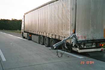 fahrenden LKW aufgefahren; zwei Personen kamen ums Leben, eine davon musste