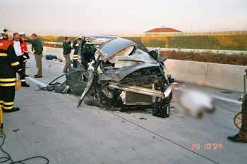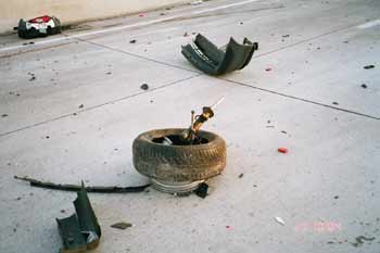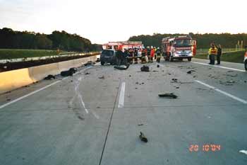 Die Trümmerteile lagen weit verstreut auf der Autobahn |