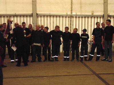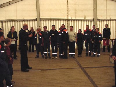 Am Abend wurde dann endlich das Geheimnis um die Sieger des Bundeswettkampfes gelüftet. Der Chef der Erfurter Berufsfeuerwehr, Herr Bauer nahm die Siegerehrung vor.
